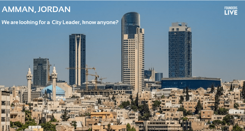 Founders Live is bringing a new startup event to Amman and is now looking for a City Leader to help launch the event in Jordan. Founders Live is a fun monthly startup networking event and pitch competition which highlights promising early-stage startups from specific regions, where winners gain recognition not only in the local community but across the global Founders Live social platform.