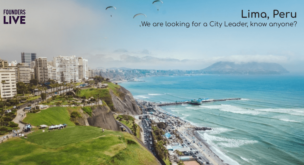 Founders Live is launching soon in Lima and is now looking to add a City Leader to help run the event in the Peruvian region. Founders Live is a fun often livestreamed startup event and pitch competition which highlights promising early-stage startups from specific regions, where winners gain recognition not only in the local community but across the global Founders Live social platform.