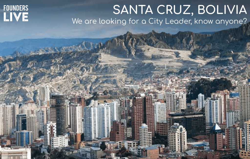 Founders Live is launching soon in Santa Cruz and is now looking to add a City Leader to help run the event in the Bolivian region. Founders Live is a fun often livestreamed startup event and pitch competition which highlights promising early-stage startups from specific regions, where winners gain recognition not only in the local community but across the global Founders Live social platform.