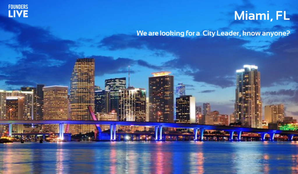Founders Live is relaunching in Miami and is now looking to add a City Leader to help run the event in the South Florida region. Founders Live is a fun startup event and pitch competition which highlights promising early-stage startups from specific regions, where winners gain recognition not only in the local community but across the global Founders Live social platform.